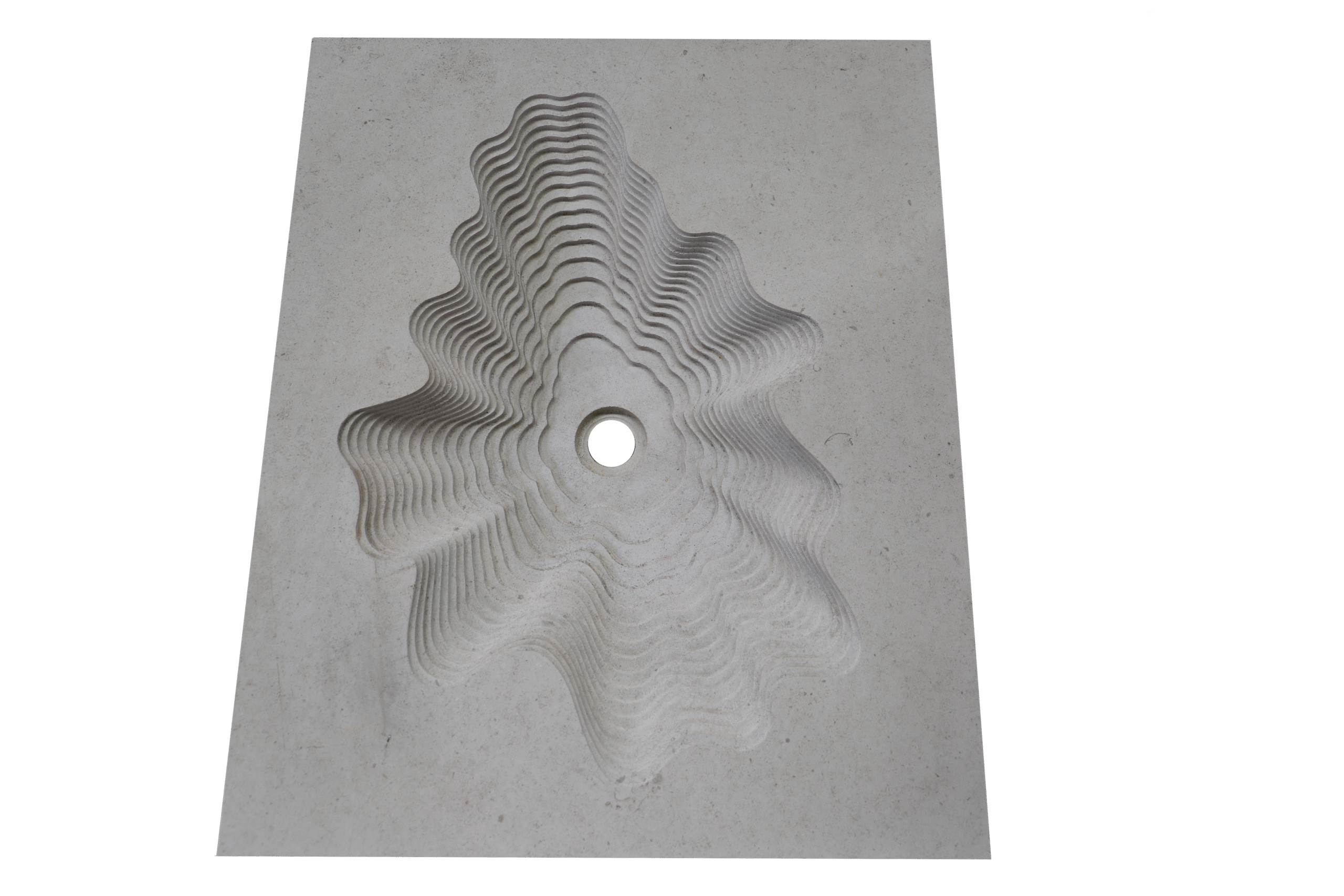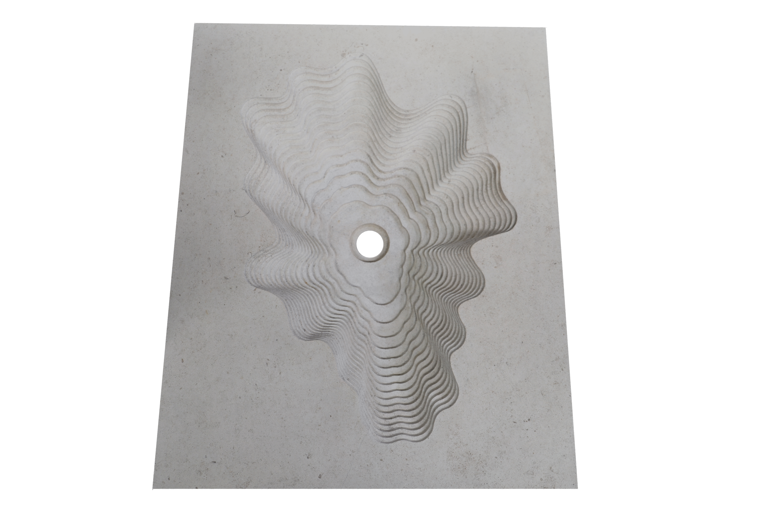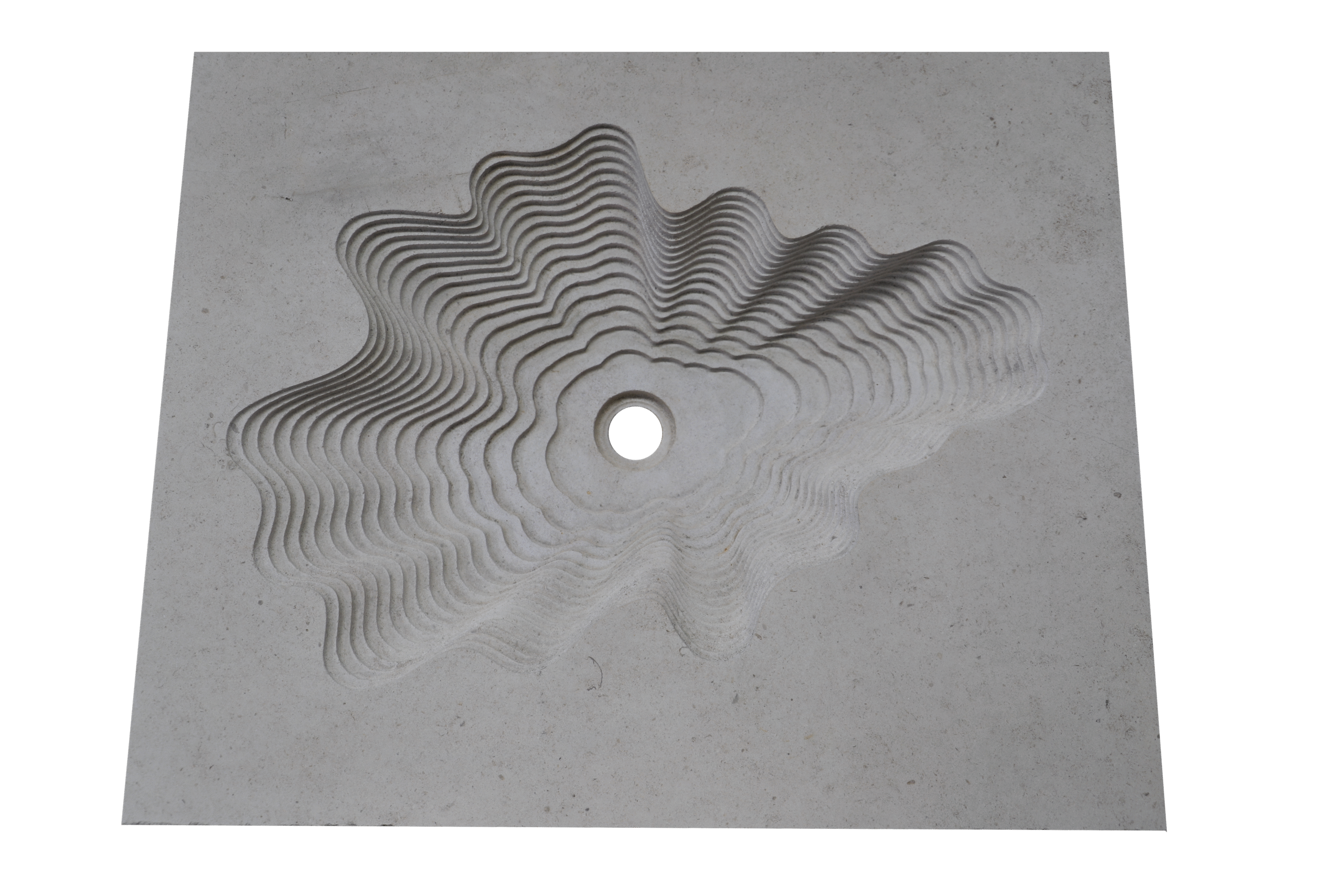 Portuguese limestone sink with a distinctive design. Its sculpted surface creates a unique effect of light and texture, combining elegance and functionality.